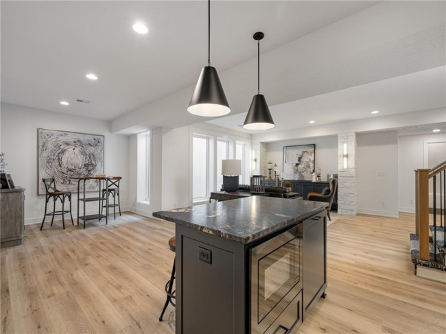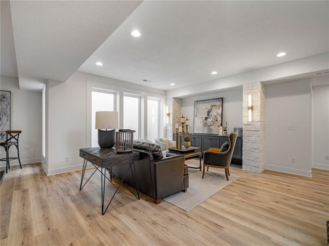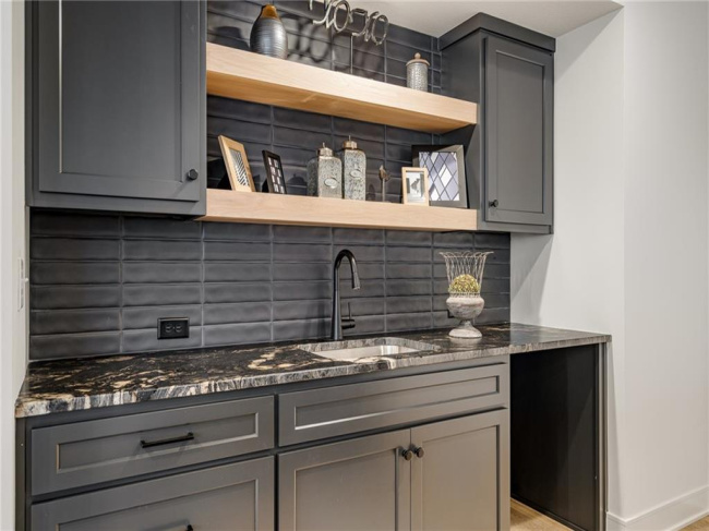 JFE Construction presents its stunning Gunnison Transitional Rev. 1.5-story plan in the highly desirable Prairie Canyon community. A dramatic, all-window A-frame entry welcomes you into the open-concept living, kitchen, and dining area. Light, wide-plank flooring, custom built-ins with floating shelves surrounding the stone fireplace, and designer lighting create a warm and sophisticated transitional style throughout the home.rnrnThe beautifully appointed kitchen features a large island with a gooseneck faucet, stainless steel appliances, custom painted cabinetry, and a butler’s pantry with coffee bar. The adjacent dining area provides the perfect setting for everyday meals or entertaining guests. Extend your gatherings outdoors on the covered patio, complete with a cozy gas fireplace.rnrnThe spacious primary suite offers a relaxing retreat, featuring elegant tile flooring in the ensuite bath, a soaking tub, walk-in shower, and double-bowl vanity. The expansive walk-in closet includes convenient third-tier storage for off-season items. The main level also includes a second bedroom or office, along with a generously sized mudroom and laundry room conveniently located off the garage.rnrnThe staircase to the lower level is enhanced with designer stair carpet beautiful sconces. Downstairs, you’ll find a large recreation area ideal for relaxing or entertaining, featuring durable LVP flooring and a full bar with microwave. Two additional bedrooms and a full bathroom complete the lower level.rnrnThis home also offers abundant storage throughout.rnrnPrairie Canyon offers maintenance-provided living with lawn care and snow removal included, and fencing is permitted within the community.rnrnExperience the beauty and comfort of this exceptional home—Prairie Canyon truly has so much to offer.