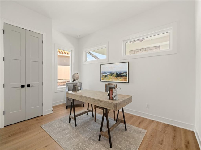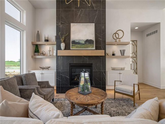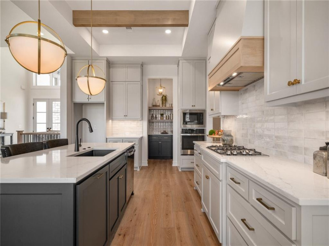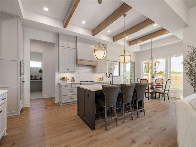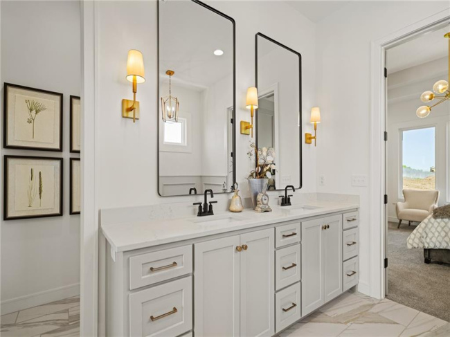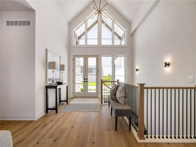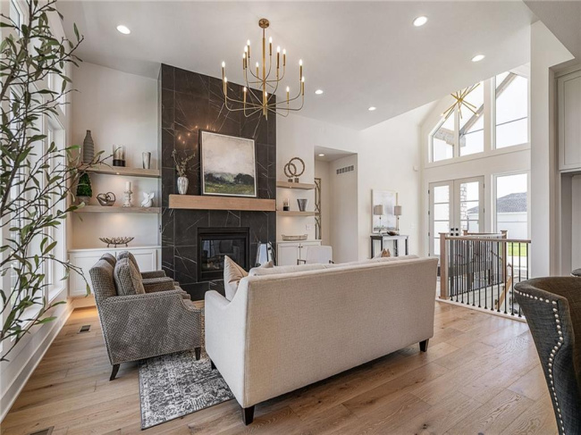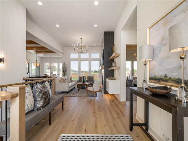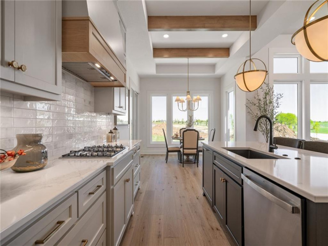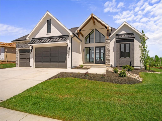 JFE Construction presents its stunning Gunnison Transitional Rev. 1.5-story plan in the highly desirable Prairie Canyon community. A dramatic, all-window A-frame entry welcomes you into the open-concept living, kitchen, and dining area. Light, wide-plank flooring, custom built-ins with floating shelves surrounding the stone fireplace, and designer lighting create a warm and sophisticated transitional style throughout the home.rnrnThe beautifully appointed kitchen features a large island with a gooseneck faucet, stainless steel appliances, custom painted cabinetry, and a butler’s pantry with coffee bar. The adjacent dining area provides the perfect setting for everyday meals or entertaining guests. Extend your gatherings outdoors on the covered patio, complete with a cozy gas fireplace.rnrnThe spacious primary suite offers a relaxing retreat, featuring elegant tile flooring in the ensuite bath, a soaking tub, walk-in shower, and double-bowl vanity. The expansive walk-in closet includes convenient third-tier storage for off-season items. The main level also includes a second bedroom or office, along with a generously sized mudroom and laundry room conveniently located off the garage.rnrnThe staircase to the lower level is enhanced with designer stair carpet beautiful sconces. Downstairs, you’ll find a large recreation area ideal for relaxing or entertaining, featuring durable LVP flooring and a full bar with microwave. Two additional bedrooms and a full bathroom complete the lower level.rnrnThis home also offers abundant storage throughout.rnrnPrairie Canyon offers maintenance-provided living with lawn care and snow removal included, and fencing is permitted within the community.rnrnExperience the beauty and comfort of this exceptional home—Prairie Canyon truly has so much to offer.